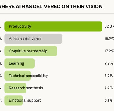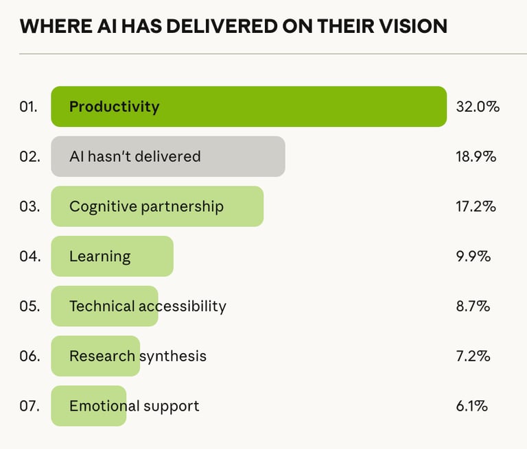 Anthropic vient de publier une étude passionnante, fondée sur plus de 80 000 entretiens menés auprès d’utilisateurs dans 159 pays et 70 langues. Et ce qui en ressort est bien plus intéressant que l’éternelle question “qui sera remplacé par l’IA ?”. Ce que disent les gens est plus intime, plus concret, plus humain. Bien sûr, la première aspiration citée est la performance professionnelle. Mais juste derrière apparaissent des désirs beaucoup plus profonds : mieux gérer sa vie, alléger sa charge mentale, retrouver du temps pour ses proches, reprendre un peu de contrôle sur un quotidien devenu trop dense. Anthropic montre notamment que le critère “life management” représente 13,5 % des aspirations exprimées et “time freedom” 11,1 %. L’étude souligne aussi qu’une partie importante des répondants commence par parler de productivité, avant de révéler que leur vraie attente est surtout une meilleure qualité de vie.